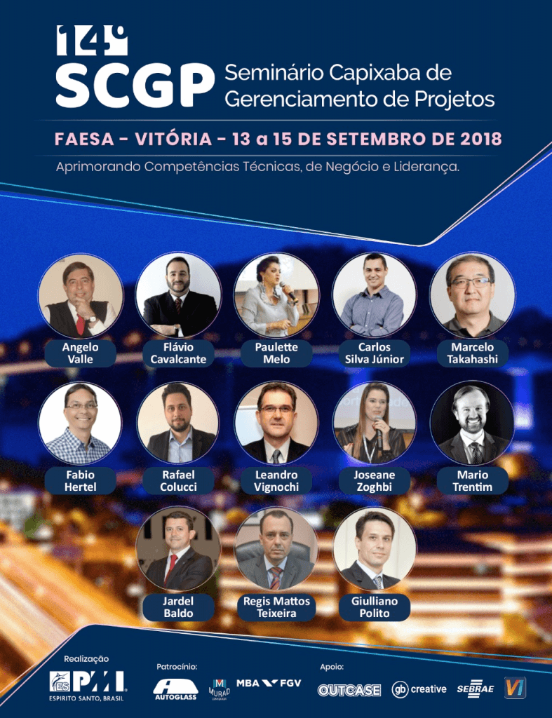 Pela primeira vez a Agência GB Creative entra como apoiadora do 14º Seminário Capixaba de Gerenciamento de Projetos, que acontece nos dias 13, 14 e 15 de setembro de 2018 na Faculdade Faesa – Campus Vitória.